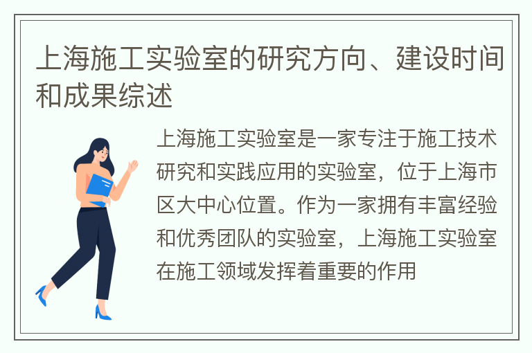 上海施工实验室是一家专注于施工技术研究和实践应用的实验室,位于上海市区大中心位置。作为一家拥有丰富经验和优秀团队的实验室,上海施工实验室在施工领域发挥着重要的作用......【点击详情】