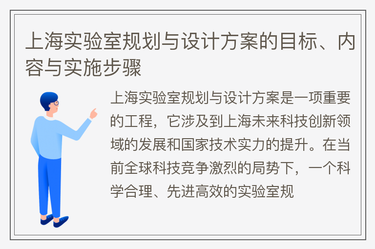 上海实验室规划与设计方案的目标、内容与实施步骤