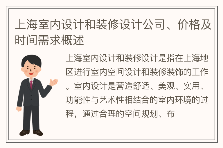 上海室内设计和装修设计是指在上海地区进行室内空间设计和装修装饰的工作。室内设计是营造舒适、美观、实用、功能性与艺术性相结合的室内环境的过程,通过合理的空间规划、布......【点击详情】