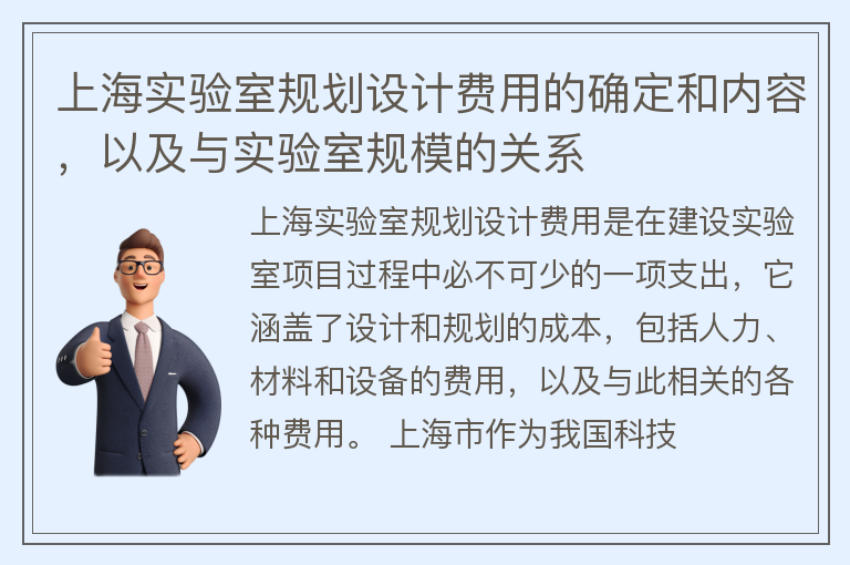 上海实验室规划设计费用的确定和内容,以及与实验室规模的关系