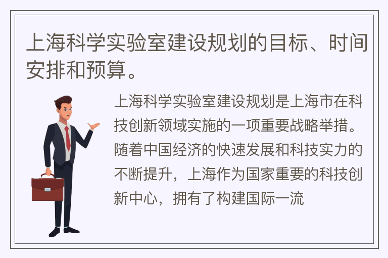 上海科学实验室建设规划是上海市在科技创新领域实施的一项重要战略举措。随着中国经济的快速发展和科技实力的不断提升,上海作为国家重要的科技创新中心,拥有了构建国际一流......【点击详情】