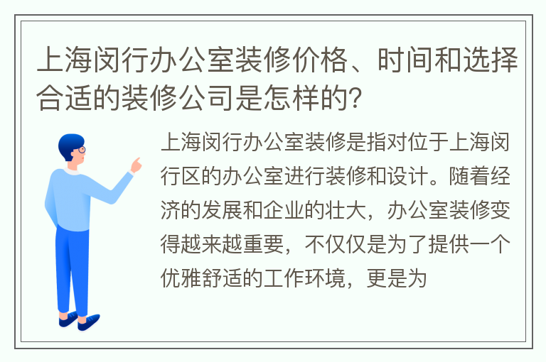 上海闵行办公室装修价格、时间和选择合适的装修公司是怎样的?