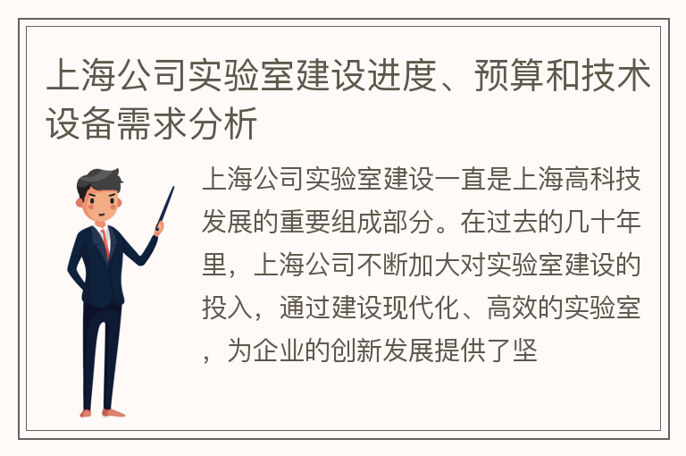 上海公司实验室建设一直是上海高科技发展的重要组成部分。在过去的几十年里,上海公司不断加大对实验室建设的投入,通过建设现代化、高效的实验室,为企业的创新发展提供了坚......【点击详情】