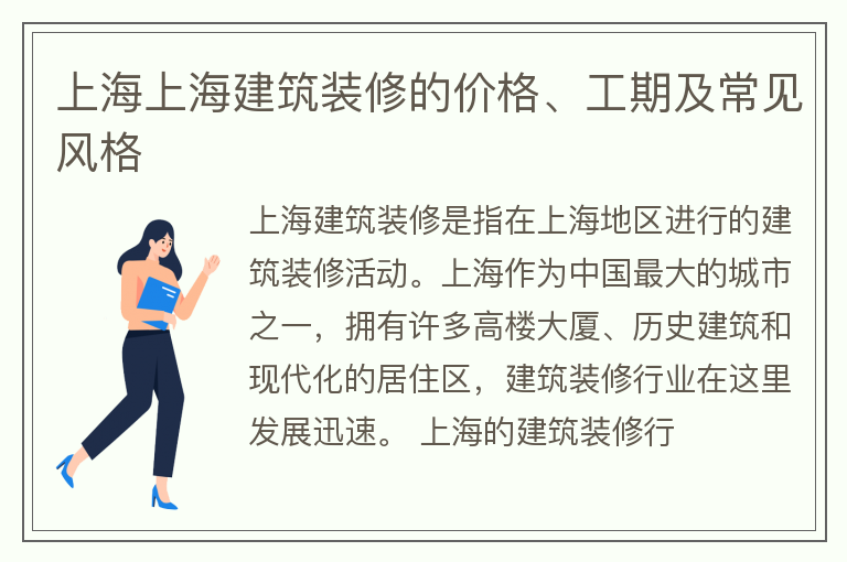 上海建筑装修是指在上海地区进行的建筑装修活动。上海作为中国最大的城市之一,拥有许多高楼大厦、历史建筑和现代化的居住区,建筑装修行业在这里发展迅速。 上海的建筑装修行......【点击详情】