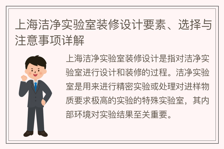 上海洁净实验室装修设计要素、选择与注意事项详解