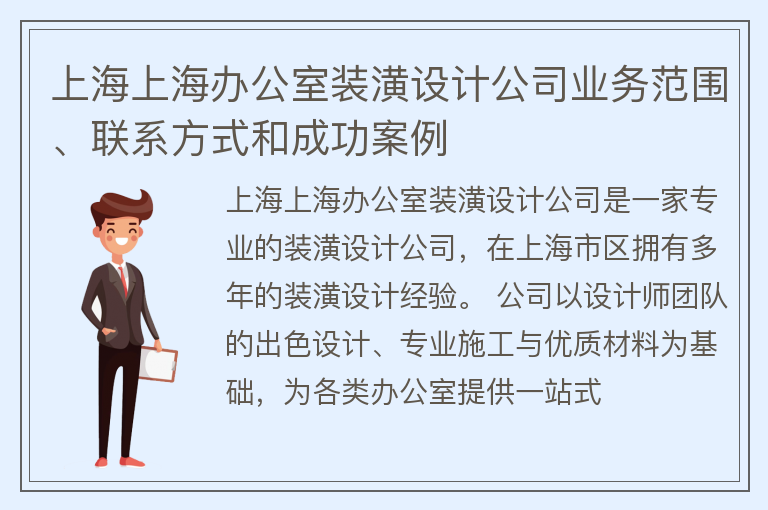 上海上海办公室装潢设计公司业务范围、联系方式和成功案例