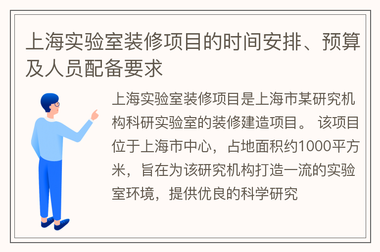 上海实验室装修项目的时间安排、预算及人员配备要求