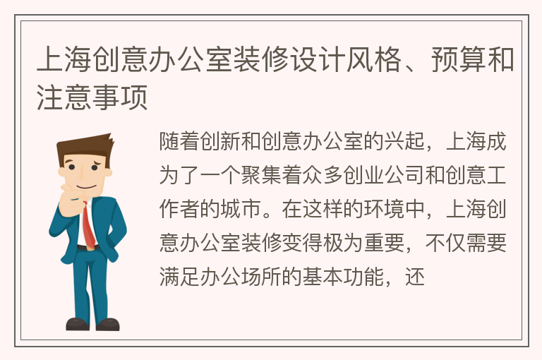 随着创新和创意办公室的兴起,上海成为了一个聚集着众多创业公司和创意工作者的城市。在这样的环境中,上海创意办公室装修变得极为重要,不仅需要满足办公场所的基本功能,还......【点击详情】