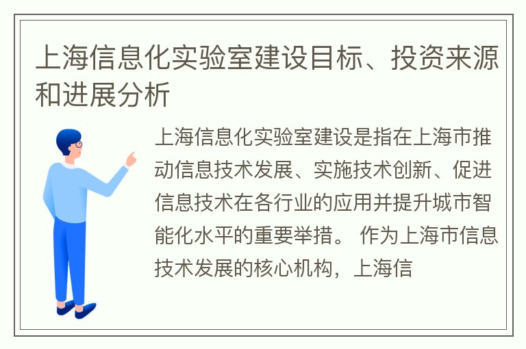 上海信息化实验室建设是指在上海市推动信息技术发展、实施技术创新、促进信息技术在各行业的应用并提升城市智能化水平的重要举措。 作为上海市信息技术发展的核心机构,上海信......【点击详情】