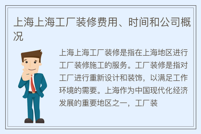 上海上海工厂装修是指在上海地区进行工厂装修施工的服务。工厂装修是指对工厂进行重新设计和装饰,以满足工作环境的需要。上海作为中国现代化经济发展的重要地区之一,工厂装......【点击详情】