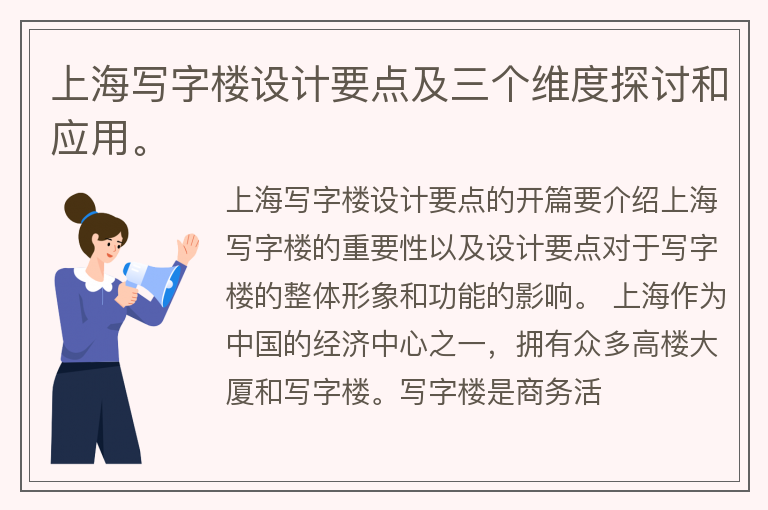 上海写字楼设计要点的开篇要介绍上海写字楼的重要性以及设计要点对于写字楼的整体形象和功能的影响。 上海作为中国的经济中心之一,拥有众多高楼大厦和写字楼。写字楼是商务活......【点击详情】
