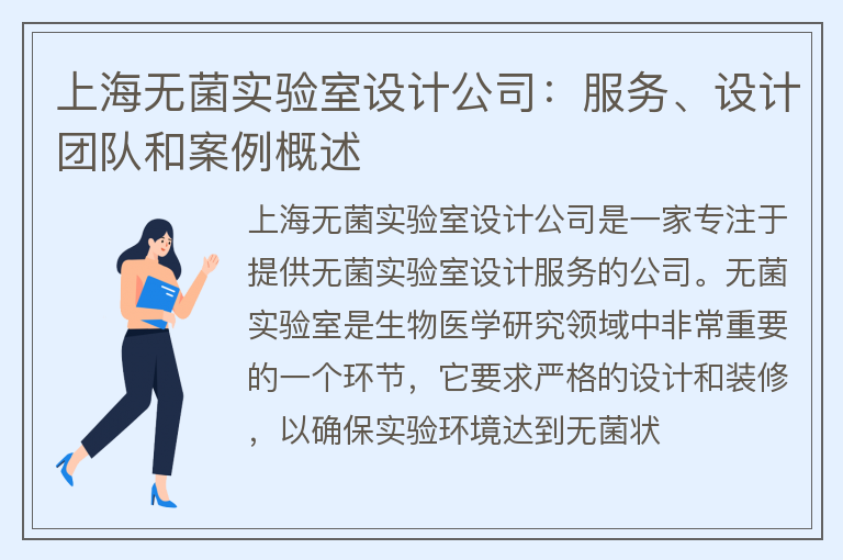 上海无菌实验室设计公司:服务、设计团队和案例概述