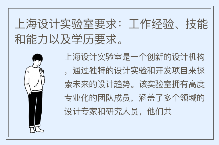 上海设计实验室要求:工作经验、技能和能力以及学历要求。