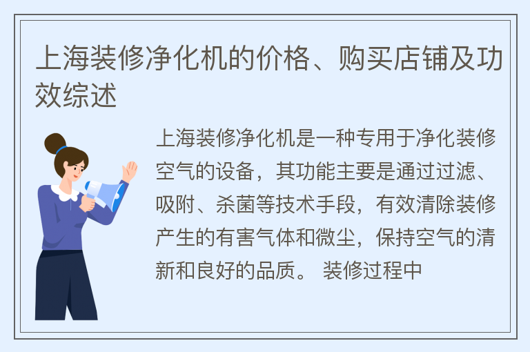 上海装修净化机是一种专用于净化装修空气的设备,其功能主要是通过过滤、吸附、杀菌等技术手段,有效清除装修产生的有害气体和微尘,保持空气的清新和良好的品质。 装修过程中......【点击详情】