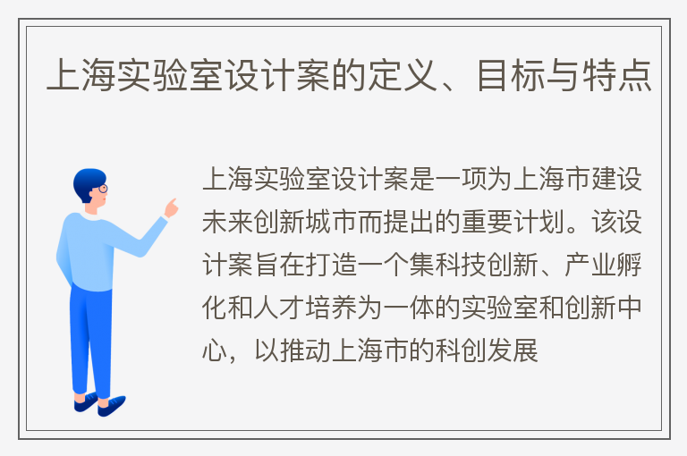 上海实验室设计案是一项为上海市建设未来创新城市而提出的重要计划。该设计案旨在打造一个集科技创新、产业孵化和人才培养为一体的实验室和创新中心,以推动上海市的科创发展......【点击详情】