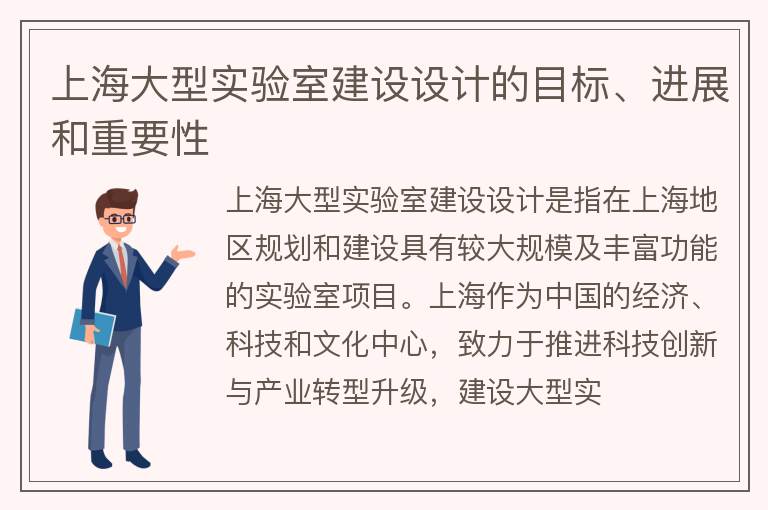 上海大型实验室建设设计是指在上海地区规划和建设具有较大规模及丰富功能的实验室项目。上海作为中国的经济、科技和文化中心,致力于推进科技创新与产业转型升级,建设大型实......【点击详情】