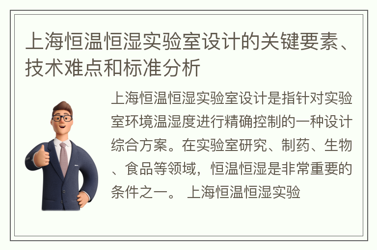 上海恒温恒湿实验室设计的关键要素、技术难点和标准分析