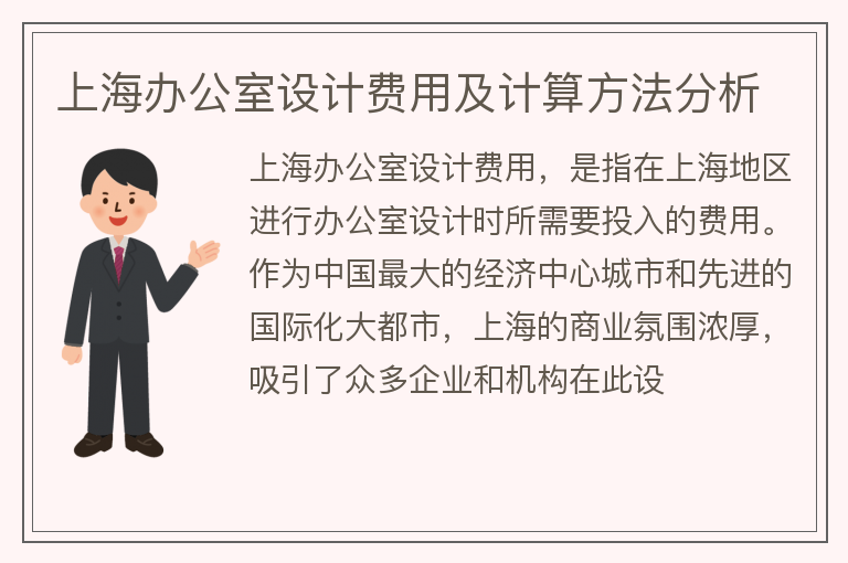上海办公室设计费用,是指在上海地区进行办公室设计时所需要投入的费用。作为中国最大的经济中心城市和先进的国际化大都市,上海的商业氛围浓厚,吸引了众多企业和机构在此设......【点击详情】