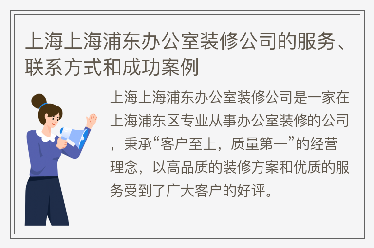 上海上海浦东办公室装修公司的服务、联系方式和成功案例