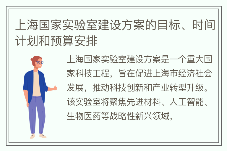 上海国家实验室建设方案的目标、时间计划和预算安排
