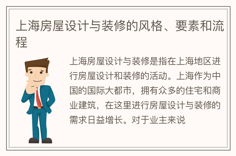 上海房屋设计与装修是指在上海地区进行房屋设计和装修的活动。上海作为中国的国际大都市,拥有众多的住宅和商业建筑,在这里进行房屋设计与装修的需求日益增长。对于业主来说......【点击详情】