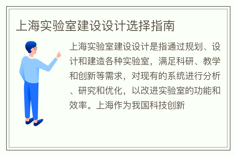 上海实验室装修建设是指在上海地区进行实验室装修的工程项目。随着科研技术的不断发展,实验室的建设变得越来越重要。在上海这个科技创新中心,实验室装修建设的需求也日益增......【点击详情】