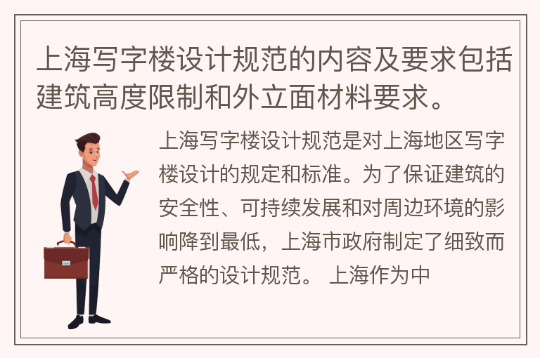 上海写字楼设计规范的内容及要求包括建筑高度限制和外立面材料要求。