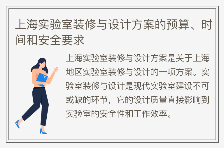 上海实验室装修与设计方案是关于上海地区实验室装修与设计的一项方案。实验室装修与设计是现代实验室建设不可或缺的环节,它的设计质量直接影响到实验室的安全性和工作效率。......【点击详情】