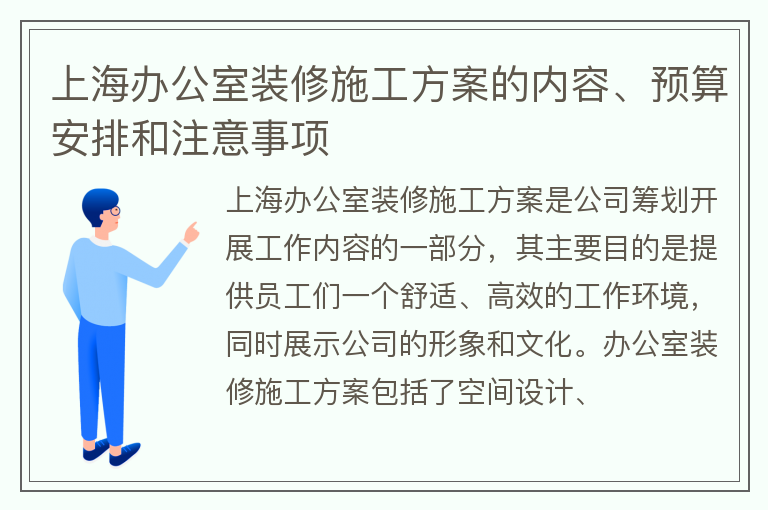 上海办公室装修施工方案的内容、预算安排和注意事项