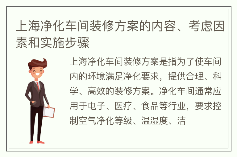 上海净化车间装修方案的内容、考虑因素和实施步骤