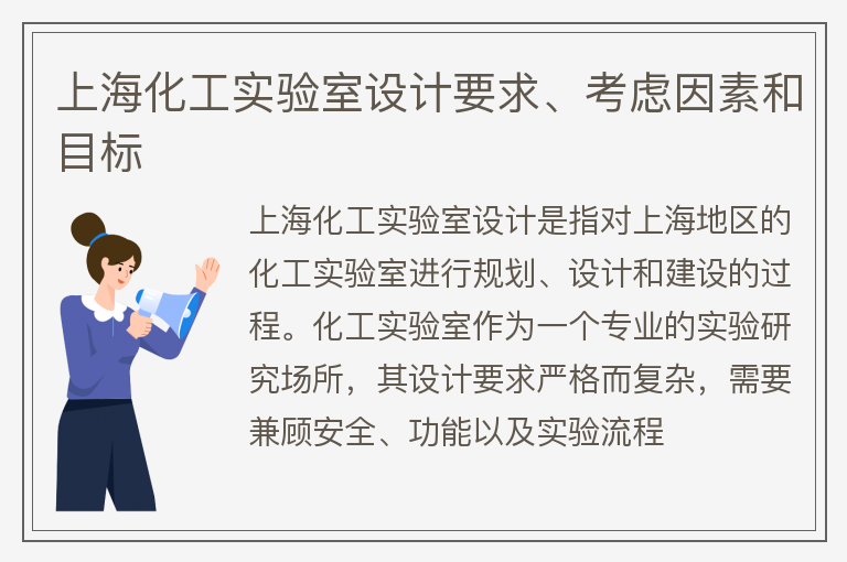 上海化工实验室设计是指对上海地区的化工实验室进行规划、设计和建设的过程。化工实验室作为一个专业的实验研究场所,其设计要求严格而复杂,需要兼顾安全、功能以及实验流程......【点击详情】