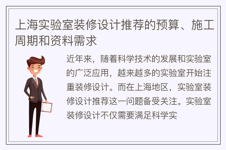 上海实验室装修设计推荐的预算、施工周期和资料需求