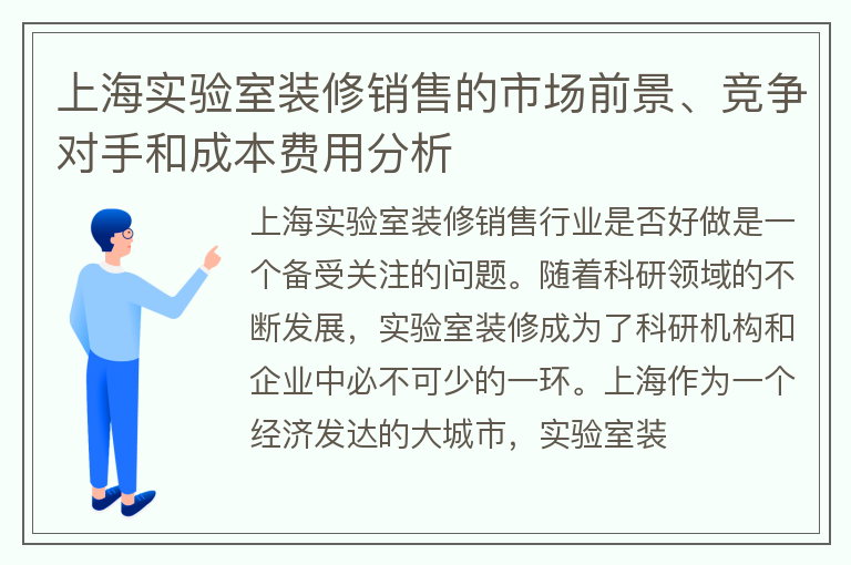 上海实验室装修销售的市场前景、竞争对手和成本费用分析