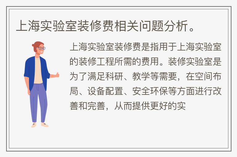上海实验室装修费是指用于上海实验室的装修工程所需的费用。装修实验室是为了满足科研、教学等需要,在空间布局、设备配置、安全环保等方面进行改善和完善,从而提供更好的实......【点击详情】