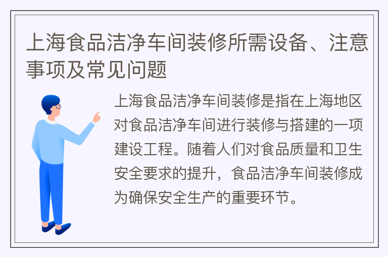 上海食品洁净车间装修所需设备、注意事项及常见问题