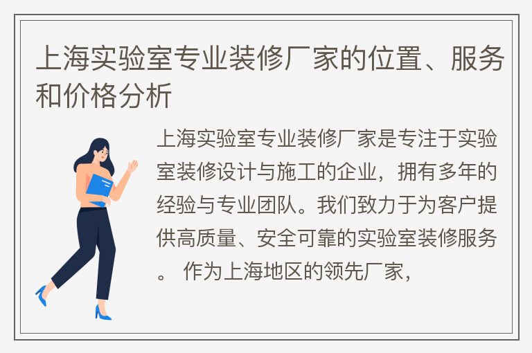 上海实验室专业装修厂家是专注于实验室装修设计与施工的企业,拥有多年的经验与专业团队。我们致力于为客户提供高质量、安全可靠的实验室装修服务。 作为上海地区的领先厂家,......【点击详情】