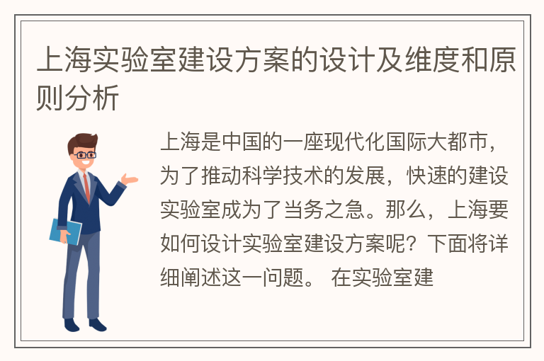上海是中国的一座现代化国际大都市,为了推动科学技术的发展,快速的建设实验室成为了当务之急。那么,上海要如何设计实验室建设方案呢?下面将详细阐述这一问题。 在实验室建......【点击详情】