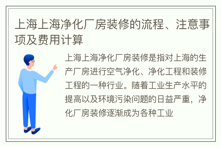 上海上海净化厂房装修的流程、注意事项及费用计算