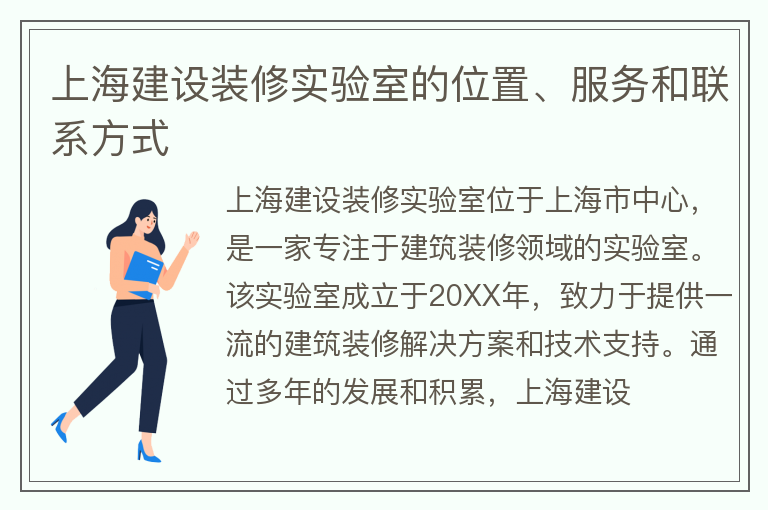 上海建设装修实验室位于上海市中心,是一家专注于建筑装修领域的实验室。该实验室成立于20XX年,致力于提供一流的建筑装修解决方案和技术支持。通过多年的发展和积累,上海建设......【点击详情】