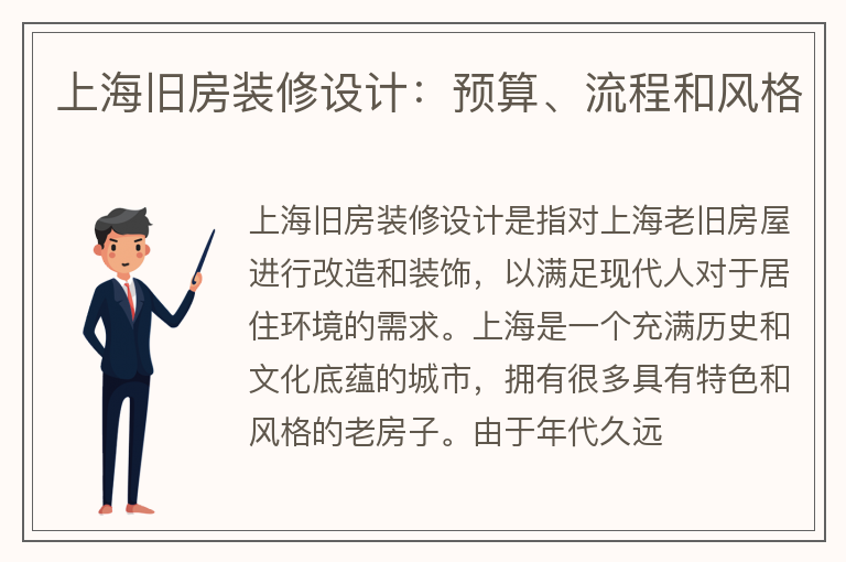 上海旧房装修设计是指对上海老旧房屋进行改造和装饰,以满足现代人对于居住环境的需求。上海是一个充满历史和文化底蕴的城市,拥有很多具有特色和风格的老房子。由于年代久远......【点击详情】
