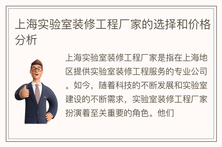 上海实验室装修工厂的地址、规模和提供的服务简介