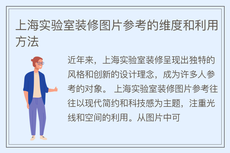 近年来,上海实验室装修呈现出独特的风格和创新的设计理念,成为许多人参考的对象。 上海实验室装修图片参考往往以现代简约和科技感为主题,注重光线和空间的利用。从图片中可......【点击详情】
