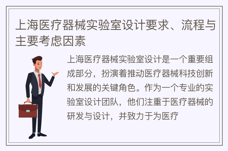 上海医疗器械实验室设计要求、流程与主要考虑因素