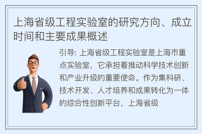 上海省级工程实验室的研究方向、成立时间和主要成果概述
