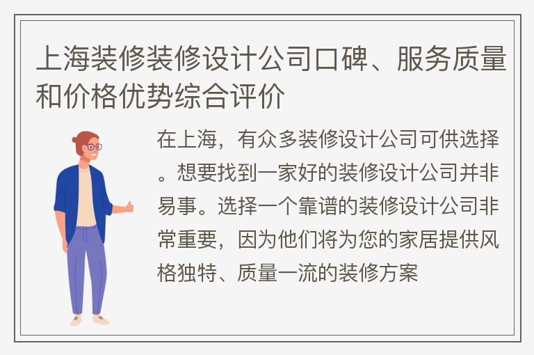 上海装修装修设计公司口碑、服务质量和价格优势综合评价