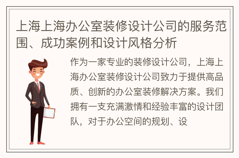 上海上海办公室装修设计公司的服务范围、成功案例和设计风格分析