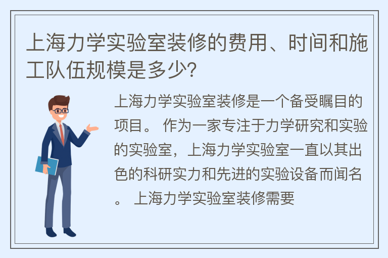 上海力学实验室装修的费用、时间和施工队伍规模是多少?