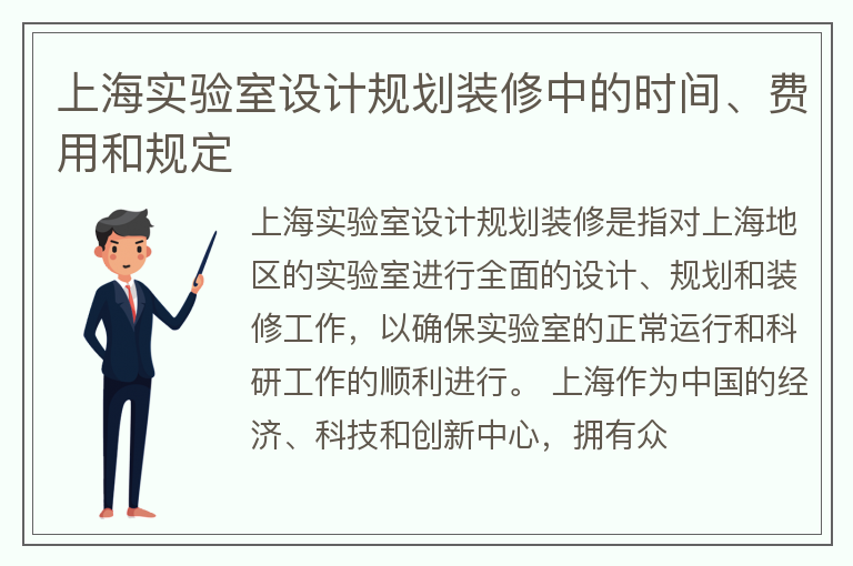 上海实验室设计规划装修是指对上海地区的实验室进行全面的设计、规划和装修工作,以确保实验室的正常运行和科研工作的顺利进行。 上海作为中国的经济、科技和创新中心,拥有众......【点击详情】