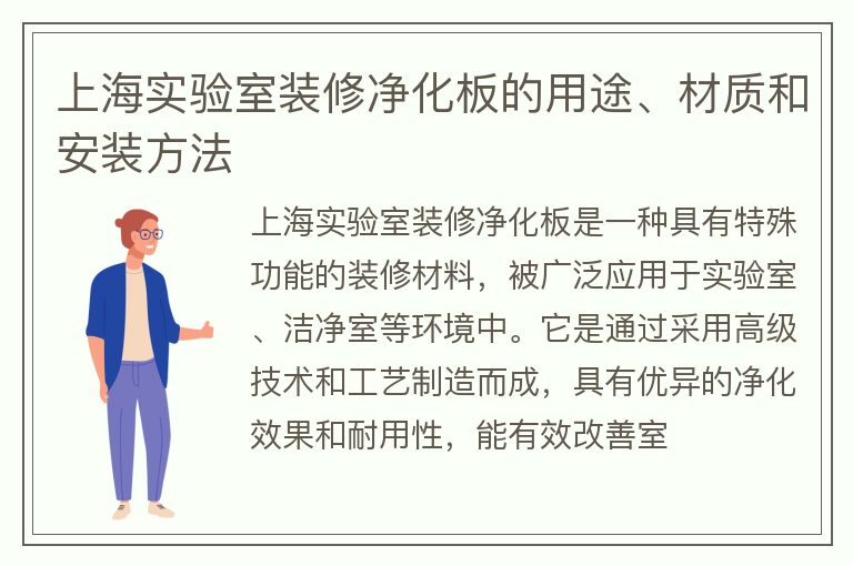 上海实验室装修净化板是一种具有特殊功能的装修材料,被广泛应用于实验室、洁净室等环境中。它是通过采用高级技术和工艺制造而成,具有优异的净化效果和耐用性,能有效改善室......【点击详情】