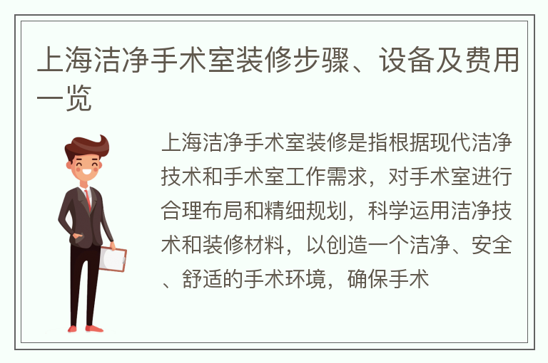 上海洁净手术室装修是指根据现代洁净技术和手术室工作需求,对手术室进行合理布局和精细规划,科学运用洁净技术和装修材料,以创造一个洁净、安全、舒适的手术环境,确保手术......【点击详情】